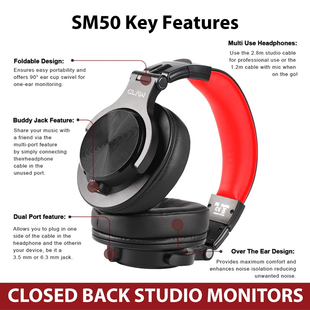 🎧 [What’s included]: CLAW SM50 Headphones, 2.8m Coiled Cable, 1.2m Straight Cable with Mic & In-line controls, Warranty card offering 12 months warranty.