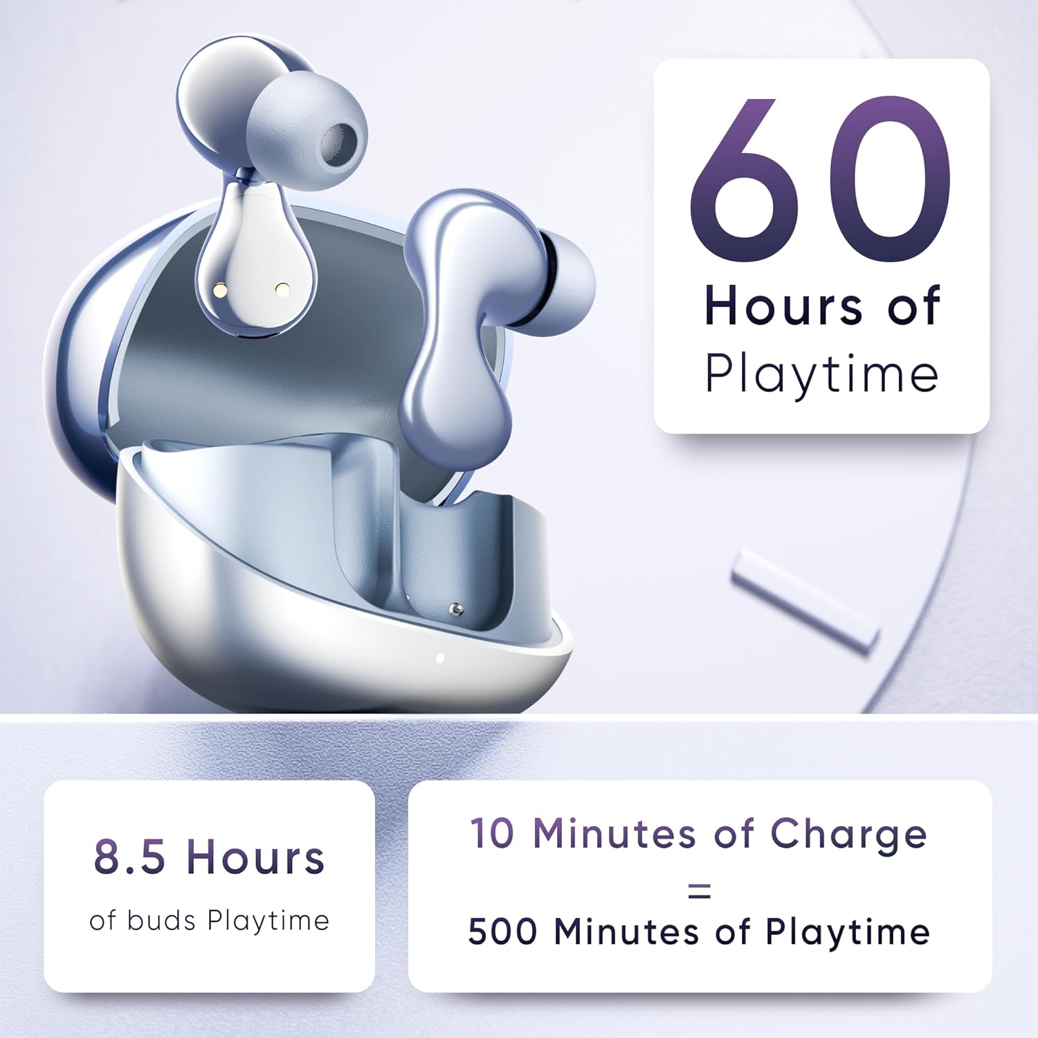 ✅ Battery & Playtime: It provides 8.5 Hrs of on-bud playtime and 60 Hrs of combined playtime. With just 10 minutes of charging, enjoy 500 minutes of playtime. The fast charge of these SuperPods comes with Type C charging.